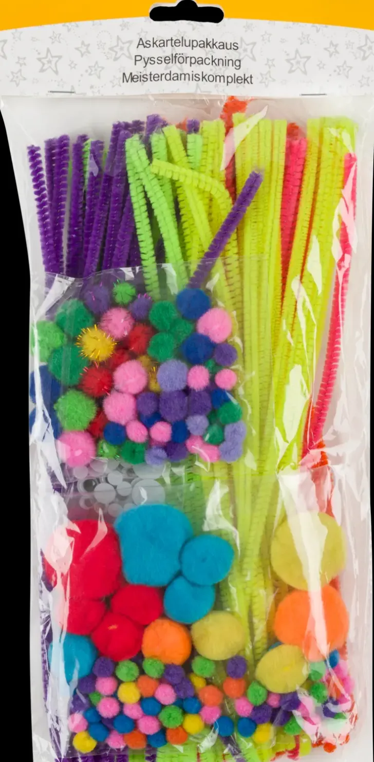 Askartelupakkaus Sisältää:110 Kpl Piipunrasseja135 Kpl Pompuloita30 Kpl Liikkuvia Askartelusilmiäei Sovellu Alle 3-Vuotiaille Lapsille. Sisältää Pieniä Osia. Tukehtumisvaara. Säilytä Tuotteen Tiedot Mahdollista Myöhempää Tarvetta Varten.