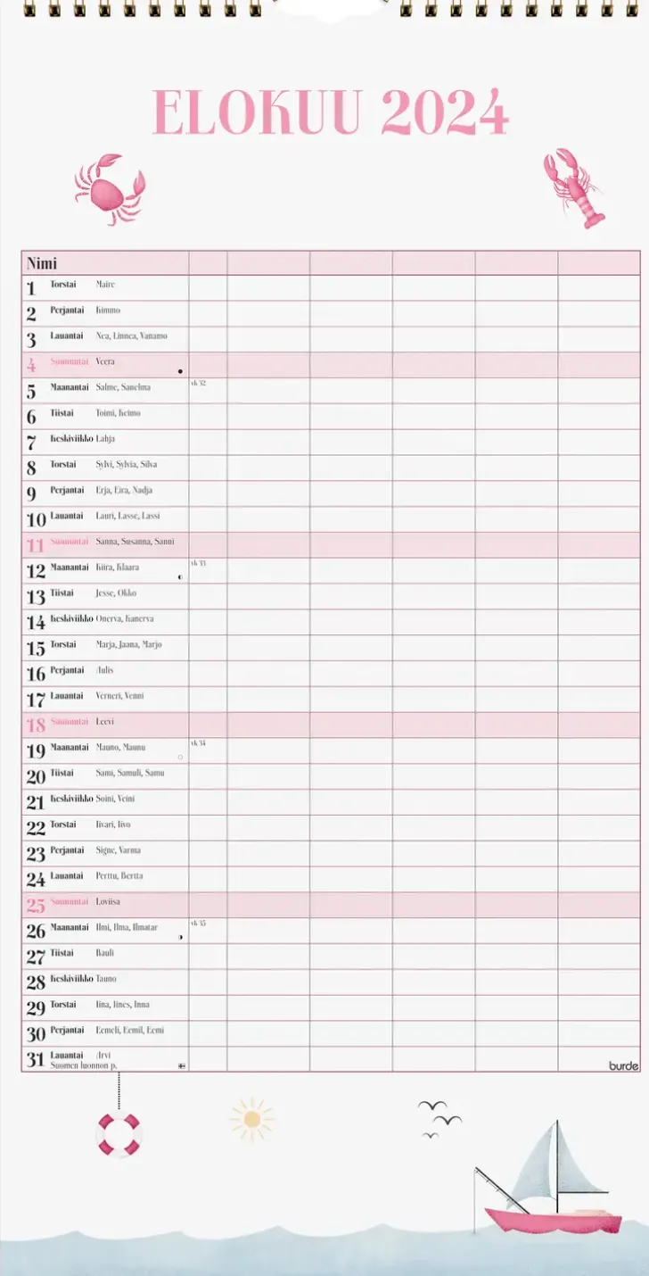 Burde Perhekalenteri 2024 Perhekalenteri Annie