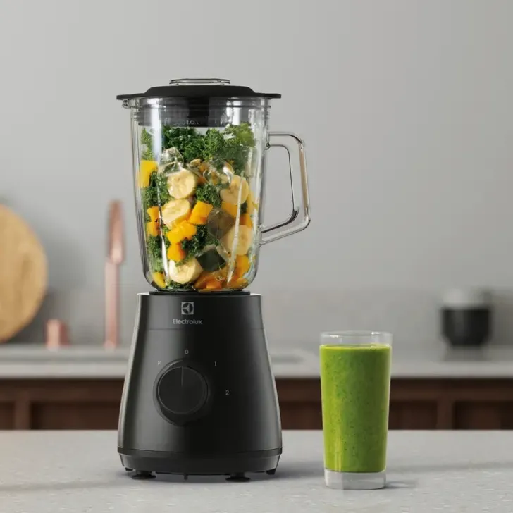 Electrolux E3Tb1-4Gg Tehosekoitimella Valmistat Nopeasti Smoothiet Tai Murskaa Jäät. Optimoitu Truflow® -Terä Ja Voimakas Moottori Sekoittavat Ainekset Pehmeän Tasaiseksi Ja Hyvän Makuiseksi Juomaksi