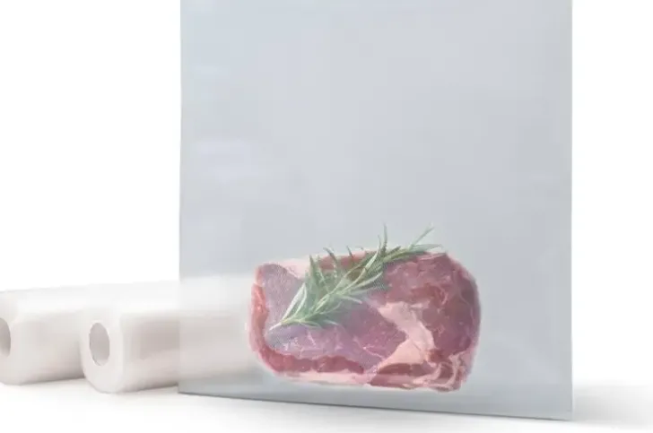 Vakuumilaitteen Pussirulla. Leikataan Sopivan Kokoisia Paloja Ja Saumataan Pohja Vakuumilaitteella Ennen Käyttöä. Rullan Sisältämä Materiaali 22 Cm X 6 Metriä.