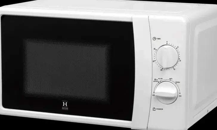 Helppokäyttöinen, Mekaanisella Ohjelmakoneistolla Varustettu Mikroaaltouuni, Jossa 20 Litran Tilavuus. Mikroaaltoteho 700W. 6 Tehoaluetta, 30 Min. Ajastin. Lasinen Kypsennysalusta, Jonka Halkaisija On 24,5 Cm.