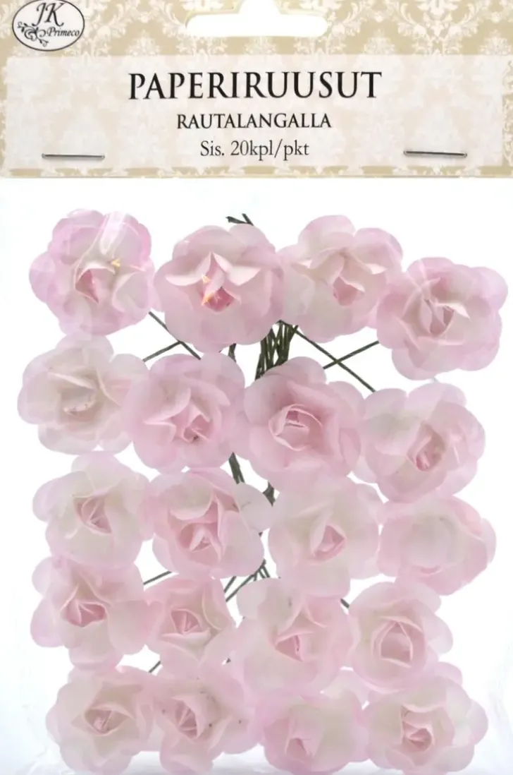 J.K. Primeco Paperiruusut Rautalangalla Vaaleanpunainen 20Kpl/Pss
