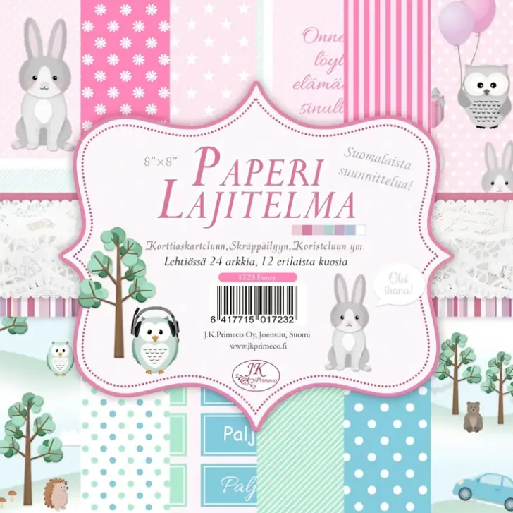 Paperilajitelmassa On Yhteensä 24 Arkkia 12 Eri Kuosilla. Sopii Korttiaskarteluun, Skräppäilyyn Ja Koristeluun. Paperilehtiön Koko Noin 20,5Cm X 20,5Cm.