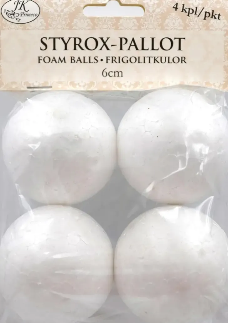 Pakkaus Sisältää 4Kpl Styroksisia Palloja, Joiden Halkaisija On N. 6Cm.