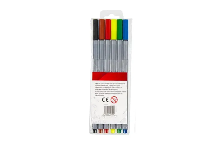 Kynäsetti, Jossa 6 Kpl Kuitukärkikyniä.