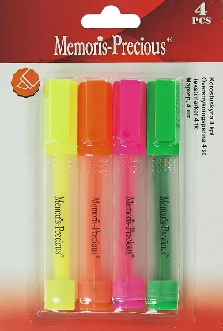 4 Kpl Korostuskyniä, Pinkki, Oranssi, Keltainen Ja Vihreä.