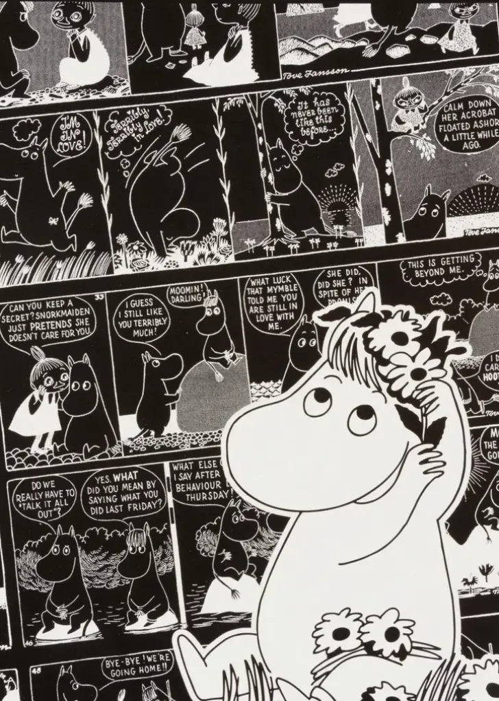 Nidottu Vihko A5, 40 Sivua 7X7 Mm Ruuduilla. Neljä Eri Mustavalkoista Sarjakuva-Aiheista Muumi-Kansivaihtoehtoa.Kotimainen Tuote.