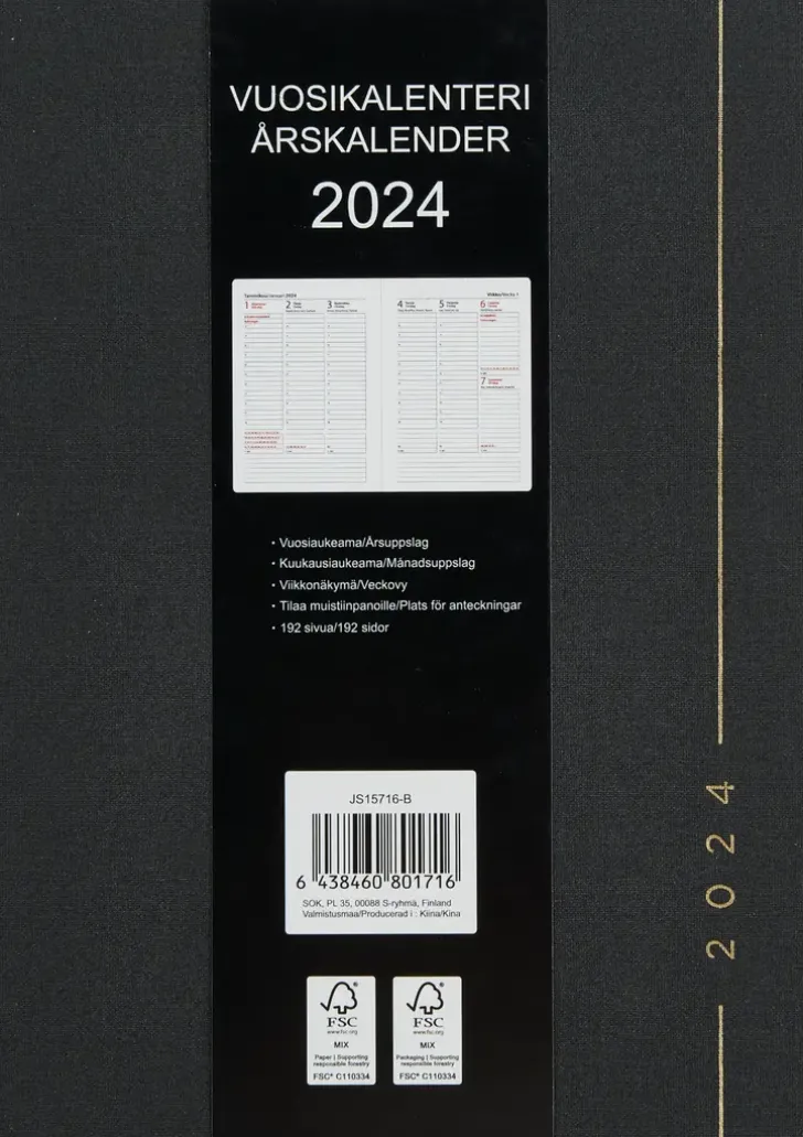 Vuosikalenteri Kangaskansilla Ja Kirjanmerkkinauhalla. Koko: A5. Kielisyys: Suomi, Ruotsi. 192 Sivua.
