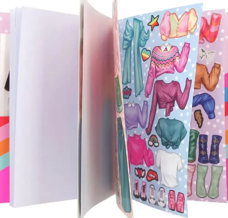Pue Topmodel Dress Me Up Tarrakirjan Sivuilla Esiintyville Malleille Trendikkäät Asukokonaisuudet Värittäen Ja Mukana Tulevia Kauniita Tarroja Käyttäen.