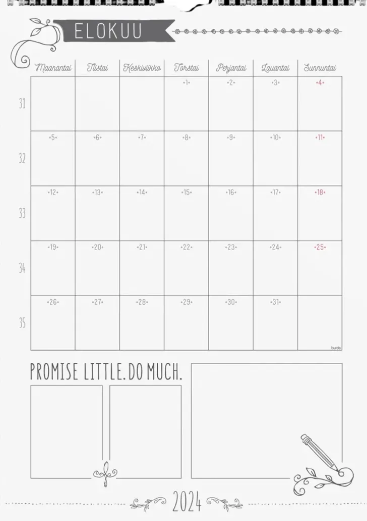 Burde Seinakalenteri 2024 Seinakalenteri Scribble