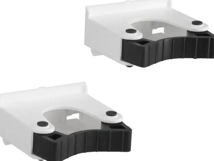 Työkalupidin, Joka Soveltuu Varrellisten Työkalujen Kuten Haravan Tai Luudan Ripustamiseen. Painetaan Paikoilleen Työkalukiskoon Tai Normaaliin Kantokiskoon. Toimitetaan 2 Kpl:En Pakkauksessa.