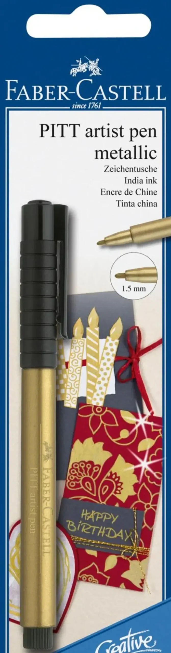 Faber-Castell Pitt Kynät Ovat Taiteilijatason Huopakyniä Joissa On Erittäin Hyvin Valoa Kestävä Pigmentti. Kultainen Väri Juoksee Kynästä Helposti Ilman Ravistelua Ja Kärjen Painelua.