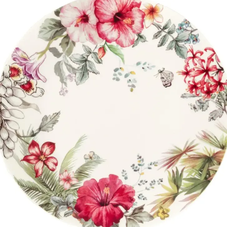 Posliinilautanen, Jonka Reunassa On Kaunis Kukkakuviointi. Halkaisija 19 Cm.
