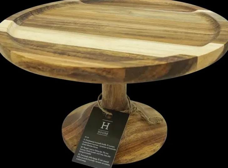 Akaasiapuusta Valmistettu Jalallinen Kakkutarjotin. Halkaisija 26 Cm, Korkeus 15 Cm. Tarjoiluvati Ei Sovellu Suoraan Kosketukseen Kuumien Tai Kosteiden Elintarvikkeiden Kanssa.