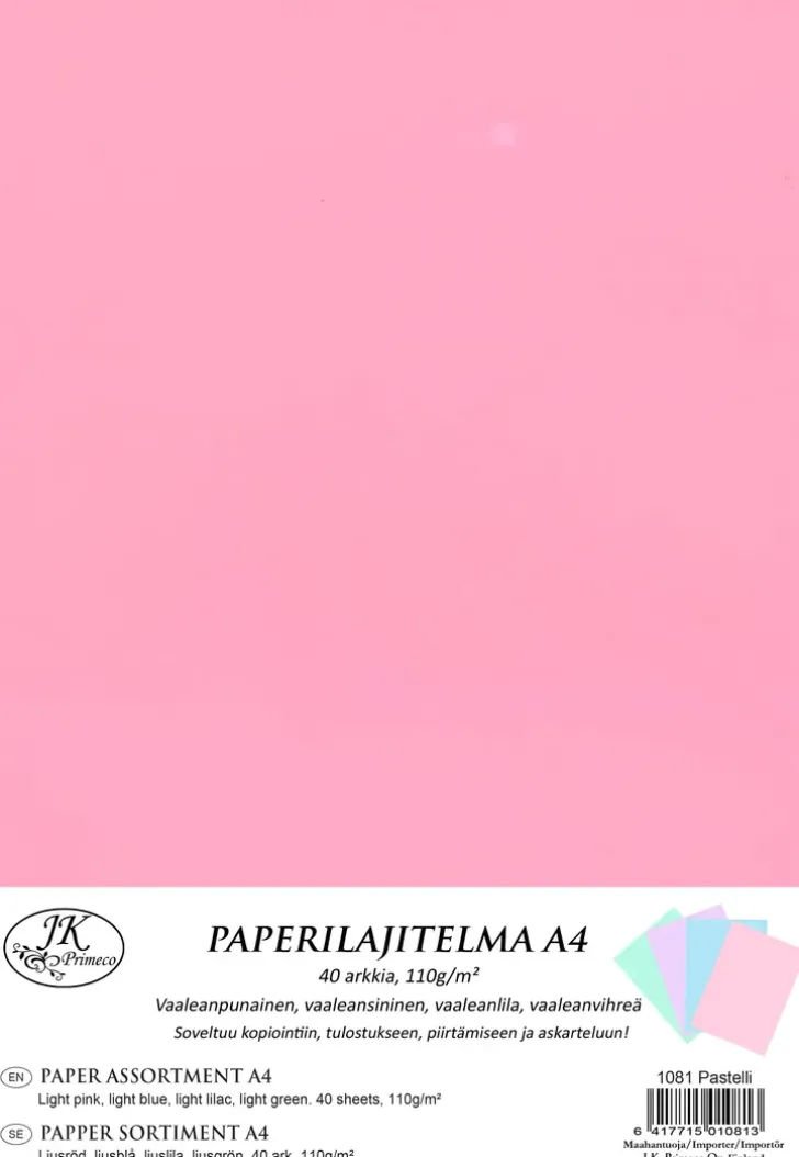 J.K. Primeco A4 Varipaperilajitelma Pastelli 40Arkkia