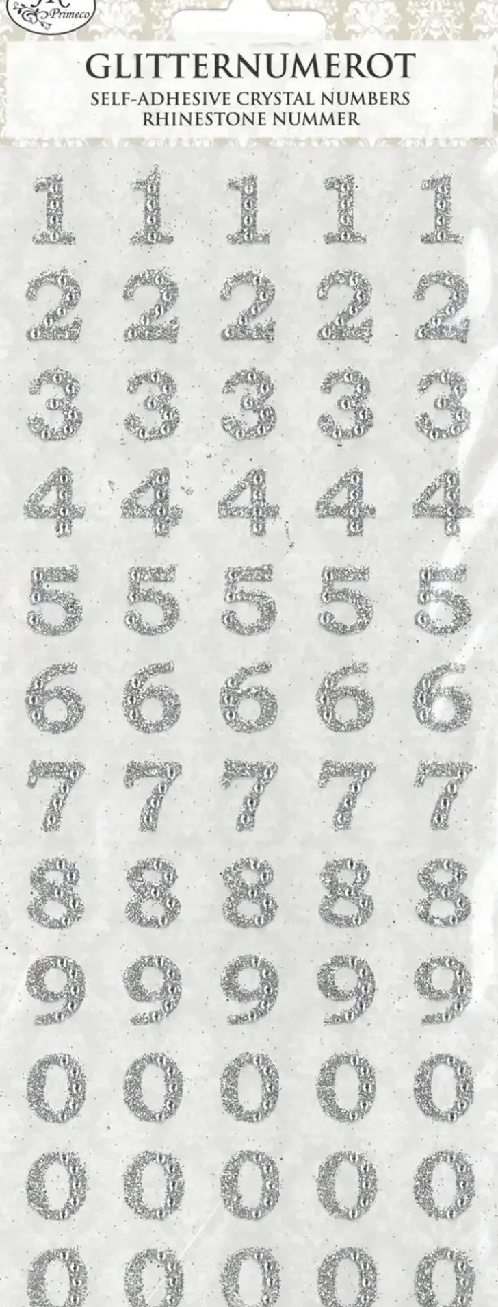 Glitternumerotarrat Askarteluun Ja Koristeluun. Pakkaus Sisältää Yhden Arkin Glitternumerotarroja. Yhden Numeron Korkeus On N. 1,3Cm. Arkin Koko On N. 23Cm X 10Cm.