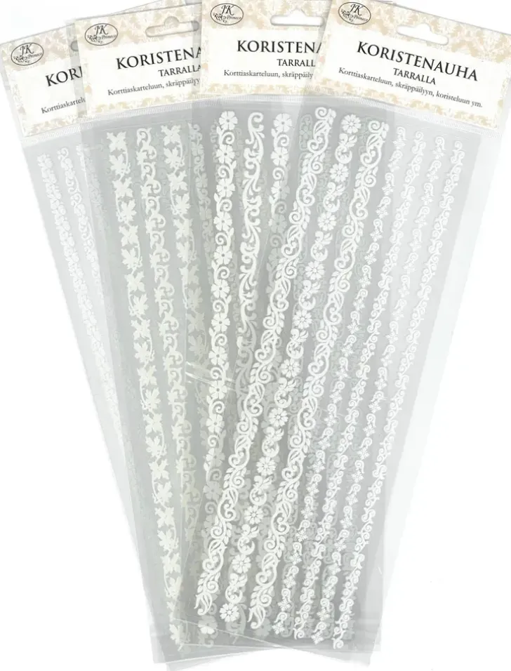 Pakkauksessa Yksi Arkki Erilaisia Kimaltelevia Koristenauhatarroja. Yhden Tarranauhan Pituus 30Cm.