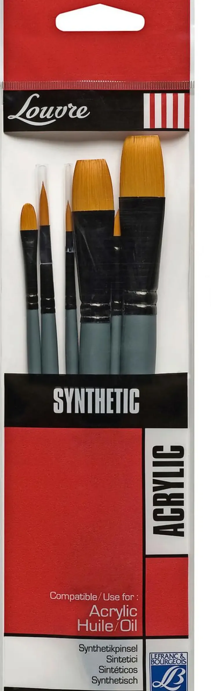 Lyhytvartinen, Keinokuituinen Lefranc &Amp; Bourgeois Louvre-Sivellinlajitelma. Sisältää 6 Kpl Siveltimiä, N°24, N°16, N°6 Pyöreät N°12, N°6 Ja Terävän N°6. Soveltuu Öljy- Ja Akryylimaalareille.