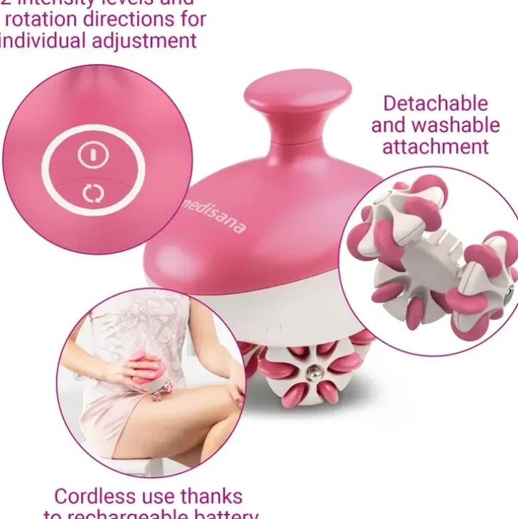 Medisana Selluliittihierojalla Verenkierto Paranee Ja Selluliitti Vähenee Hieronnan Ulottuessa Ihon Eri Kerroksiin Saakka. Laitteessa On Kaksi Eri Hierontatasoa, Sekä Kolme Kahteen Suuntaan Pyörivää Rullaosaa. Hierojaa Voi Käyttää Jaloille, Pakaroille, Käsivarsille, Vatsalle. Laite Toimii Ladattavilla Paristoilla, Joten Sen Käyttö On Helppoa Ilma Johtoa. Selluliittihieroja Kestää Kosteutta, Ja Sen Käyttö Suihkun Jälkeen Onnistuu Vaivatta. Rullat Ovat Irrotettavissa Ja Pestävissä.