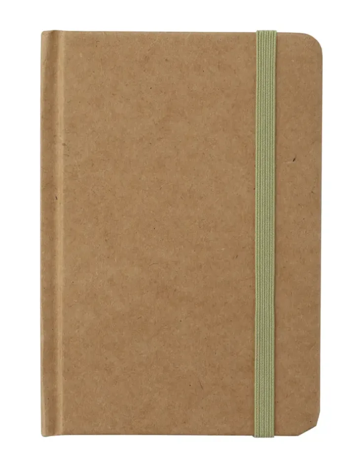 Kierrätetystä Paperista Valmistettu Muistikirja Kuminauhasuljennalla. A6-Kokoinen Muistikirja, Jossa 96 Viivoitettua Sivua. Kirjan Mitat: 10,5 X 14,8 X 1 Cm.