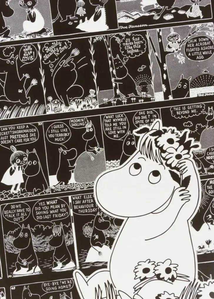 Nidottu Vihko A4, 40 Sivua 7X7 Mm Ruuduilla. Neljä Eri Mustavalkoista Sarjakuva-Aiheista Muumi-Kansivaihtoehtoa. Kotimainen Tuote.