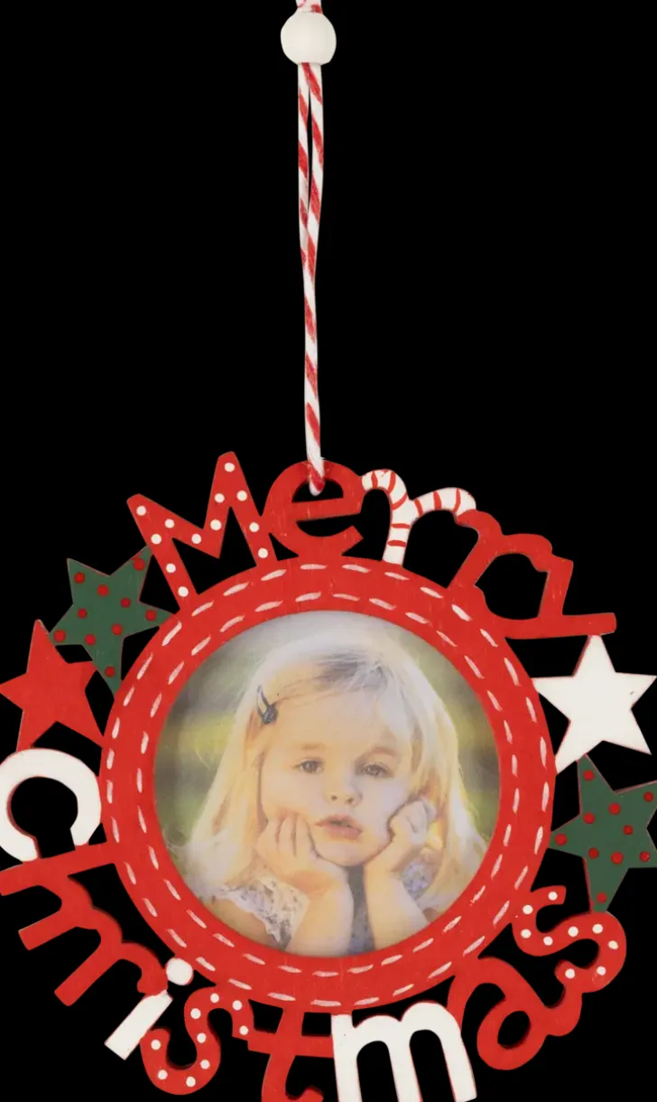 Ripustettava Jouluaiheinen Valokuvakehys. Halkaisija 12 Cm. Vain Koristekäyttöön.