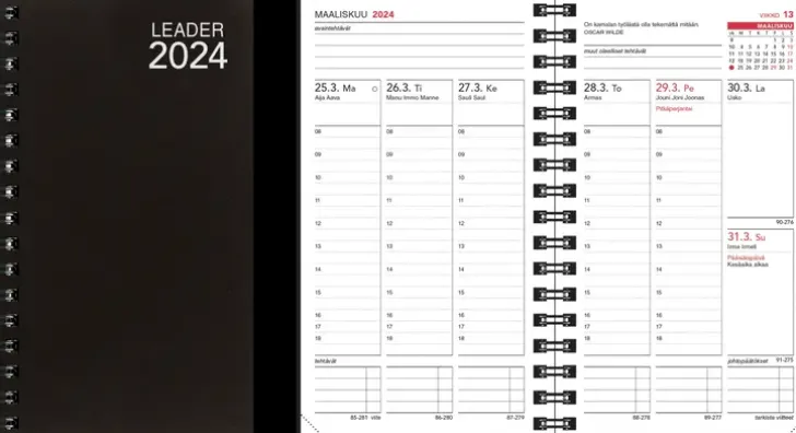 Koko 87 X 153 Mm, Viikot 42/2023-1/2025, Kuukausi- Ja Projektisuunnittelusivut 2024 Ja 2025, Monikäyttöinen Viitelomakkeisto. Aukeamalla Viikko, Tunnit 8-18, Liputuspäivät, Kansalliset Pyhät Aukeamilla Ja Luettelona, Nimipäivät. Wiresidottu, Kulmaperforoitu. Kestävät Tukevat Mustat Polypropeenikannet. Sopii Käyttöön Myös Sellaisenaan. Käy Myös Muiden Kustantajien Kansiin. Suomenkielinen.