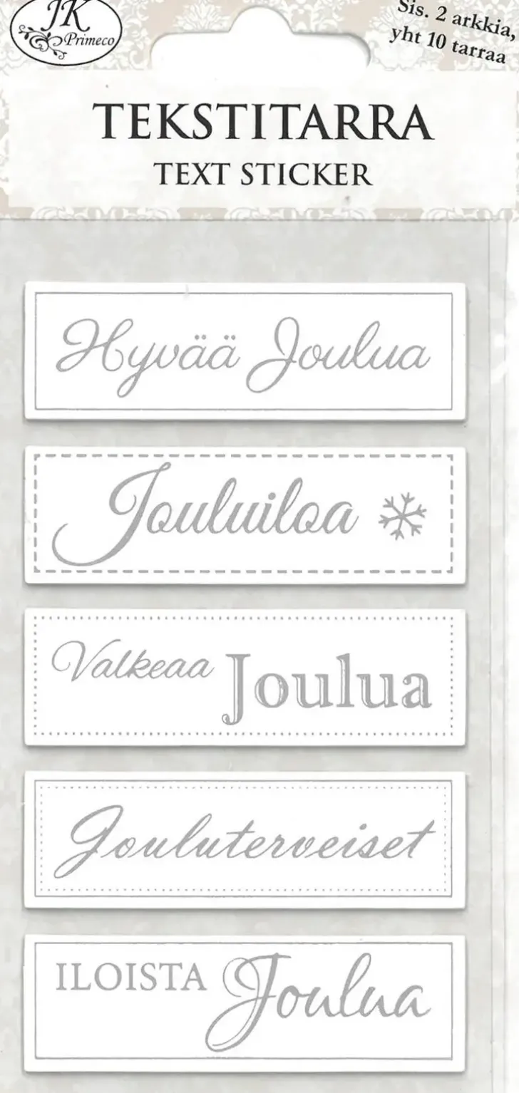 Tekstitarra Joulutoivotuksella Askarteluun Ja Koristeluun. Materiaali Kartonki. Pakkauksessa 2 Arkkia