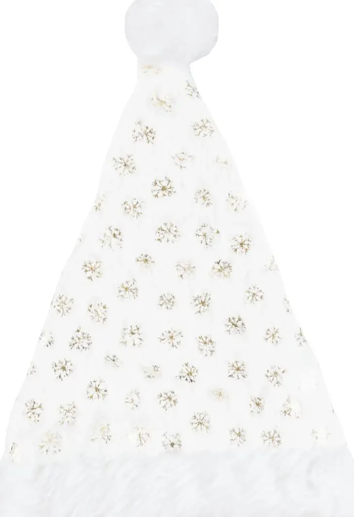 Suloinen Valkoinen Tonttulakki Kullanvärisillä Hiutalekuvioinneilla. Ihastuttava Vaihtoehto Perinteiselle Tonttulakille. Koko 58 Cm. Vesipesu Kielletty.